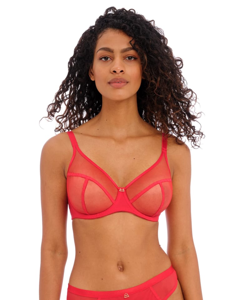 Przejrzysty stanik Freya powraca w nowej, odważnej kolorystyce Chilli Red. Nasz biustonosz Snapshot High Apex ma miseczki z przezroczystej siateczki z wydłużonym wierzchołkiem, co nadaje mu modny wygląd.