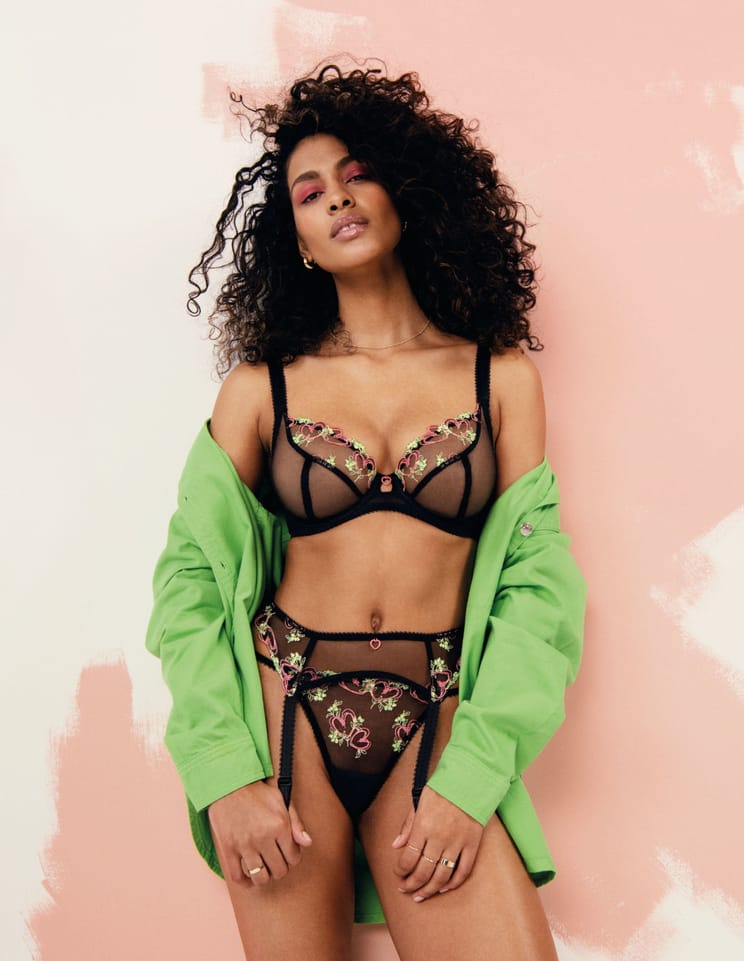 Ulepsz swój wygląd bielizny za pomocą pasa do pończoch Loveland w kolorze czarnym z pięknym ozdobnym haftem. Pas zapinany na haftki z możliwością regulacji.