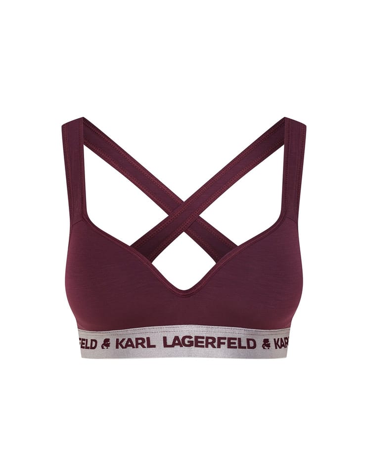 Kobiece kształty spotykają się z wyrazistym stylem dzięki temu usztywnianemu biustonoszowi wzbogaconemu metaliczną opaską z logo na klatce piersiowej. Wykonany z ultra miękkiego Lyocellu, ten elegancki biustonosz ma formowane miseczki dla dodatkowego wsparcia i jest wykończony skrzyżowanymi ramiączkami.