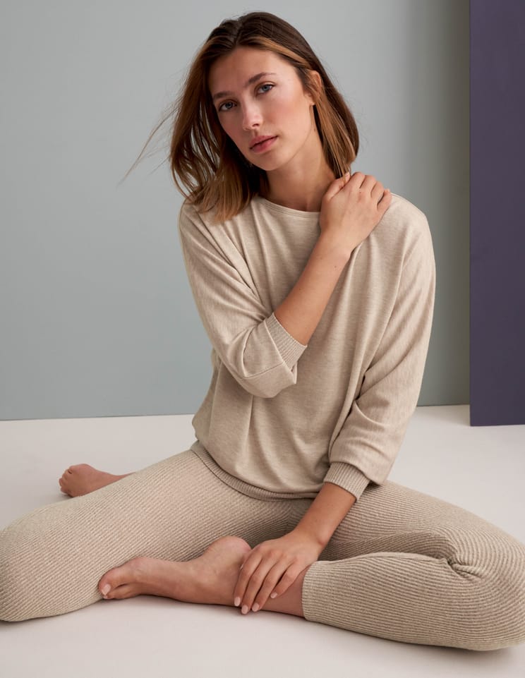 Poznaj niezawodny sweter, który możesz po prostu zarzucić na ramiona po długim dniu. Ale co jest najlepsze? Jest on wykonany z tkaniny przypominającej dzianinę, pochodzącej z recyklingu, nad którą pracowaliśmy przez lata.