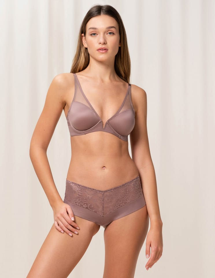 • Miękka i wygodna koronka w połączeniu z gładką elastyczną tkaniną zapewnia niezwykle miękkie wyściełanie bez efektu zwijania się bielizny