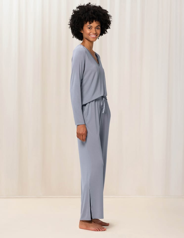 Wiemy, jak ważny jest dobry wypoczynek w nocy. Dlatego właśnie zaprojektowaliśmy te spodnie od piżamy z materiału z aloesem, który poprawia jakość snu. Reguluje on temperaturę i zapewnia komfort przez całą noc.